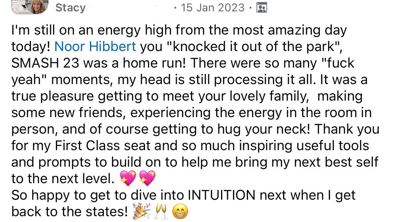 Get ready to kickstart 2025 with a bang! SMASH 2025 is not just another online event—it’s your opportunity to gain the clarity, tools, and mindset shifts needed to make this your most successful year yet. This is your VIP ticket to manifesting mastery, goal-crushing strategy, and next-level transformation—all delivered in Noor Hibbert's signature no-BS, high-energy style!